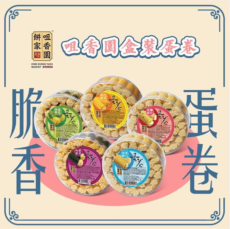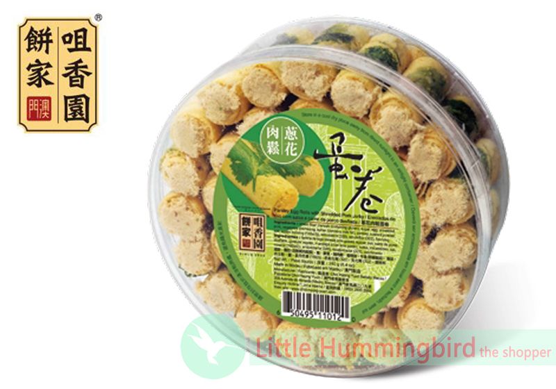 咀香園 蔥花肉鬆蛋卷 (圓盒裝)240gX1盒 澳門90年手信名牌 Egg Rolls 香芹 肉鬆 蛋卷 餅乾 自家手工製作 人氣澳門手信 特產 聖誕節 中秋節 新年 送禮 澳門直送 平行進口