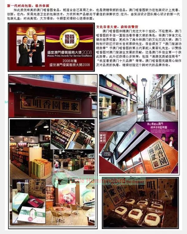小蜂鳥 : 「如果是送禮,請註明,可以免費配送多個原裝紙袋(如有),只限送紙袋,因為澳門法例規定,膠袋每個MOP$1。」