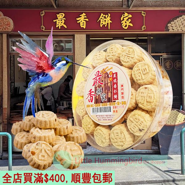 最香餅家 炭燒迷你杏仁餅 410gX1盒 澳門68年品牌 人氣澳門手信 BBQ Mini Almond Cookies 杏仁餅 曲奇餅 原裝 手工製作 零食小食素食 特產 澳門直送 無防腐劑 平行進口