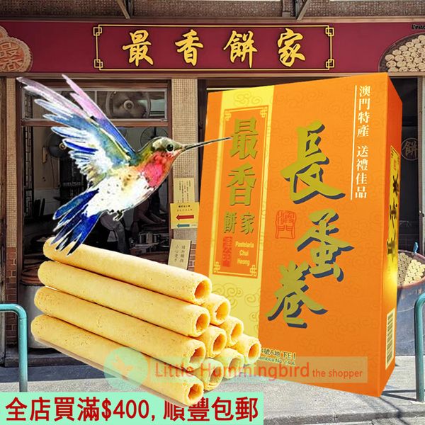 最香餅家 長蛋卷 195gX1盒 澳門68年品牌 人氣澳門手信 Long Egg Rolls 蛋卷 鬆脆餅乾 傳統手工製作 零食小食 辦公室零食 特產 企業送禮 禮品 澳門直送 無防腐劑 平行進口