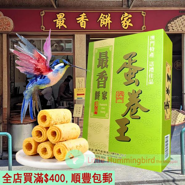 最香餅家 蛋卷王 (短蛋卷) 210gX1盒 澳門68年品牌 人氣澳門手信 Short Egg Rolls 蛋卷 鬆脆餅乾 手工製作 傳統零食 結婚禮餅 企業禮品 特產 澳門直送 無防腐劑 平行進口