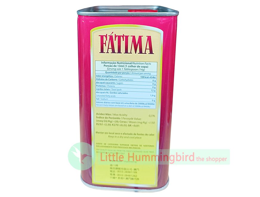 葡國花地瑪 特級初榨橄欖油 (傳統鐵罐裝) 1000mlX1罐 澳門進口 Fatima 葡萄牙96年品牌 Extra Virgin Olive Oil 橄欖油 健康食油 澳門直送 無防腐劑 平行進口