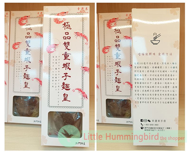 特點 : 澳門麵粉製作,新鮮,健康,有麵味,濃香蝦子湯底! ! !