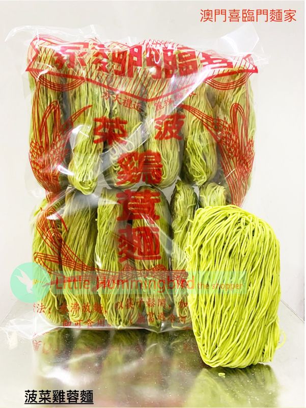 喜臨門 菠菜雞茸麵(幼麵) 600g X 1袋 (10個麵裝) 澳門67年品牌 Chicken Noodle 新鮮健康 雞肉麵 純手工製作 麵餅 麫餅麵底 人氣澳門手信 澳門直送 無防腐劑 平行進口