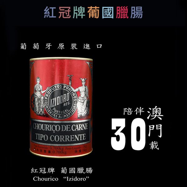 葡國紅冠牌 IZIDORO 葡國臘腸 1000gX1罐 澳門進口 葡萄牙百年品牌 Sausage 紅罐牌 依西多祿 伊西多羅 西洋臘腸 臘味罐頭 葡國傳統食物 葡國餐 人氣澳門手信 澳門直送 平行進口