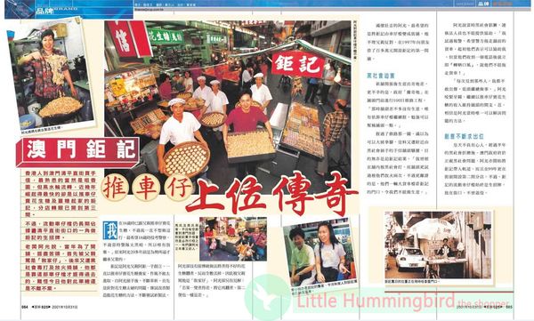 《鉅記餅家》創辦人梁燦光,只有小學程度,無學歷,無背景,把一個街頭小攤車,發展至澳門最大的手信連鎖企業,佔有七成澳門手信市場,成功歸因於對食物品質的堅持。