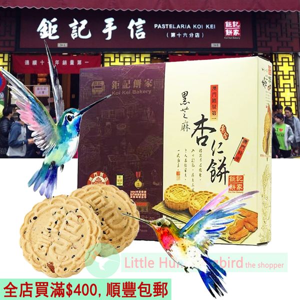 鉅記 黑芝麻杏仁餅 (12件裝) 240gX1盒 人氣澳門手信 Almond Cookies w/c Black Sesame 杏仁餅 曲奇餅乾 古法製作 特產 商務禮品 澳門直送 無防腐劑 平行進口