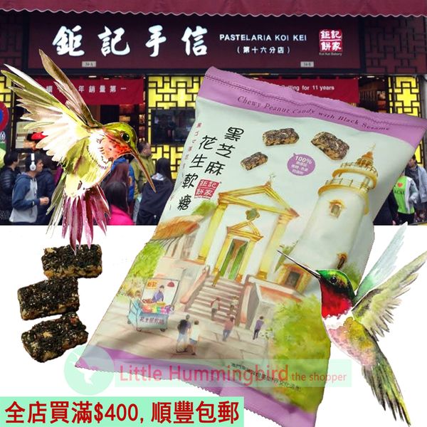 鉅記 黑芝麻花生軟糖 400gX1包 人氣澳門手信 Black Sesame Peanut Chewy Candy 軟糖 原裝果仁糖 懷舊小食 糖果 辦公室零食 素食 特產伴手信 澳門直送 平行進口