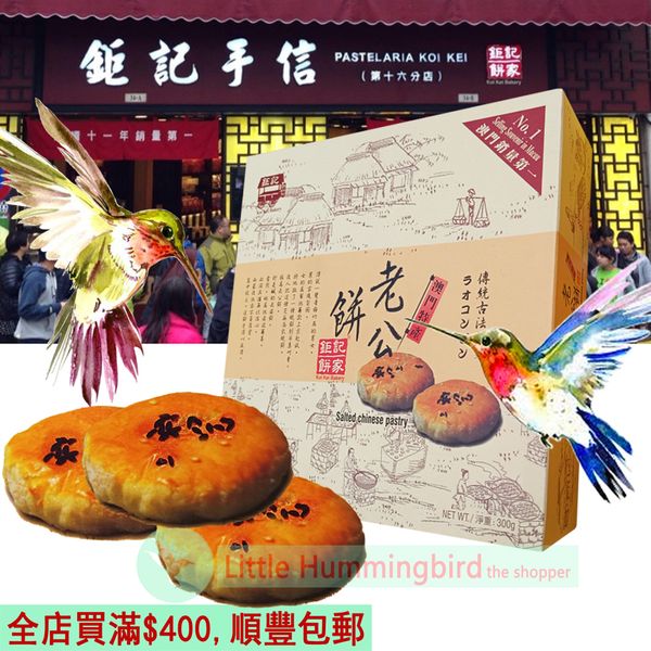 鉅記 老公餅 (鹹味) 300gX1盒 人氣澳門手信 Salted Chinese Pastry 夾心餡餅 鬆軟餅 酥餅乾 原裝正版 手工製作 懷舊傳統 零食小食糕點 特產送禮 澳門直送 平行進口