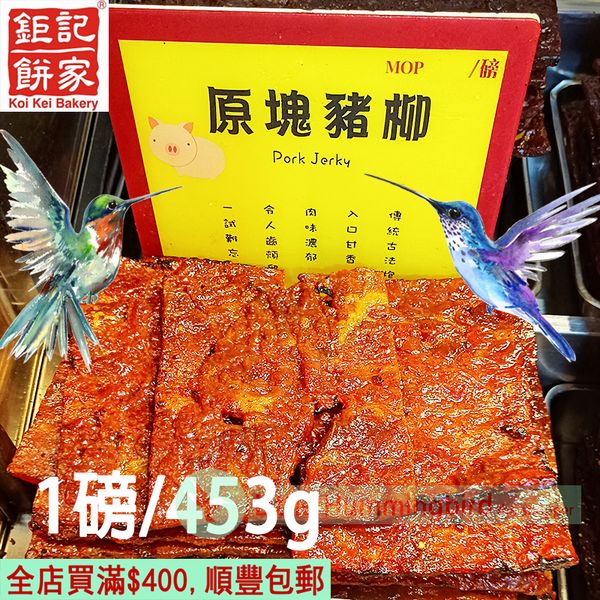 鉅記 新鮮炭燒 原塊豬柳 1磅(453g)X1袋 人氣澳門手信 Fresh BBQ Pork Jerky 有汁豬肉乾 每天現烤 厚切 大塊 豬肉脯 特產 (即埸入袋 採購當日寄出) 澳門直送 平行進口