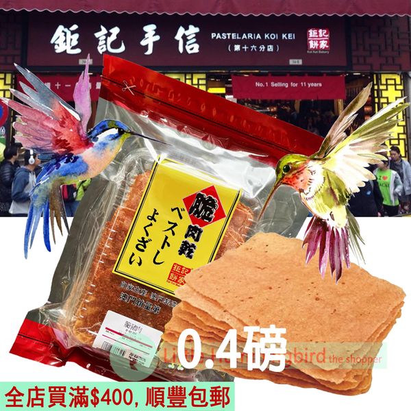 鉅記 脆豬肉 約0.4磅(181g)X1袋 人氣澳門手信 Crispy Pork Jerky 薄脆豬肉乾 超脆超鬆化 辦公室零食野餐路營 即食下酒零食小食 澳門直送 無防腐劑 特產手信送禮 平行進口