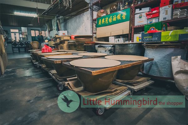 "曬蝦醬,首先要曬十日;曬好了以後要跟六七個月前的舊蝦醬混在一起,再曬過;當然,不可能連續曬十日,這樣蝦醬攪拌起來,會好像煲燶東西般變焦的,所以曬了兩日後,便要搬到室內晾外面,以後再拿到一兩日晾。工序多,時間長,心思密,這樣的古法造蝦醬,確實比其他蝦醬廠來得費時。"