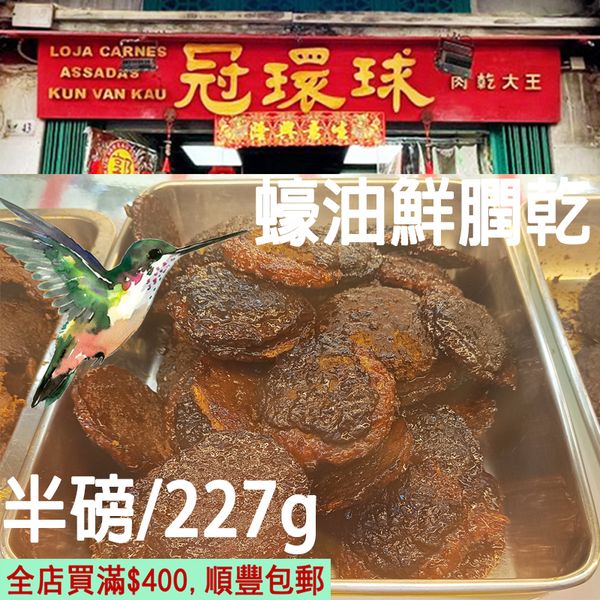 冠環球 新鮮炭烤 蠔油鮮膶乾 半磅227gX1袋 澳門肉乾大王 百年老號 BBQ Liver Jerky 豬膶乾 人氣澳門手信 特產 (即埸密封入袋 採購當日寄出) 澳門直送 無防腐劑 平行進口