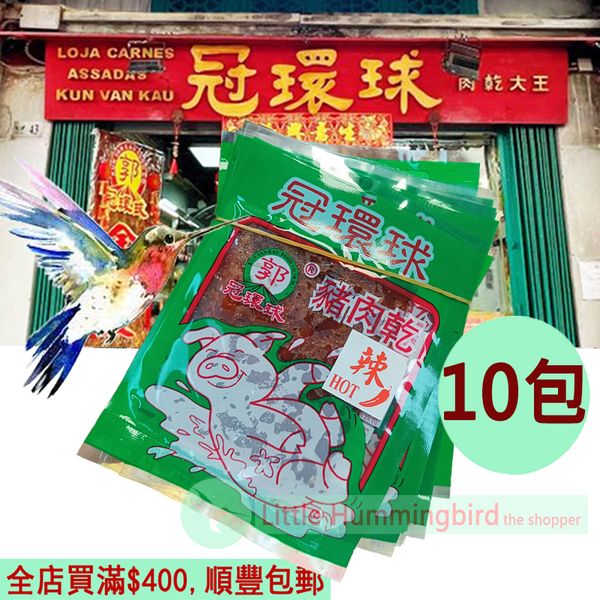 冠環球 新鮮炭烤 辣咭豬(豬肉乾)(辣味) 11gX10小包 澳門肉乾大王 百年老號 BBQ Pork Jerky 有汁 薄切 豬肉脯 人氣澳門手信 特產 零食小食 澳門直送 無防腐劑 平行進口