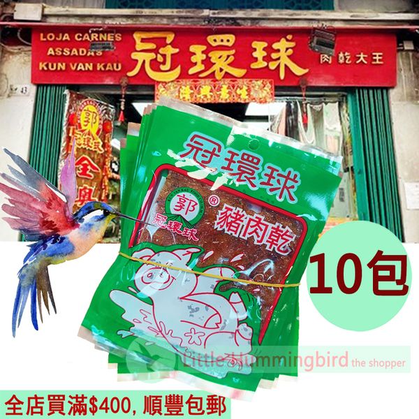 冠環球 新鮮炭烤 咭豬(豬肉乾) 11gX10小包 澳門肉乾大王 百年老號 BBQ Pork Jerky 有汁 薄切 豬肉脯 古法自家製作 人氣澳門手信 特產 零食小食 澳門直送 無防腐劑 平行進口