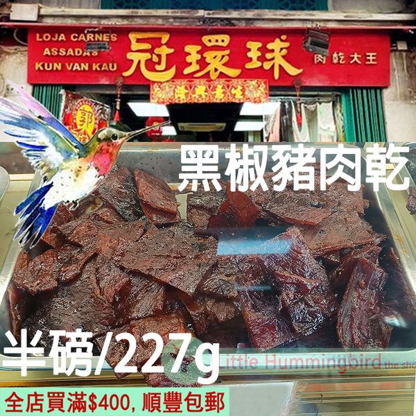冠環球 新鮮炭烤 黑椒豬肉乾(辣味) 半磅227gX1袋 澳門肉乾大王 百年老號 BBQ Pork Jerky 有汁豬肉脯 人氣澳門手信 (即埸密封入袋 採購當日寄出) 澳門直送 無防腐劑 平行進口