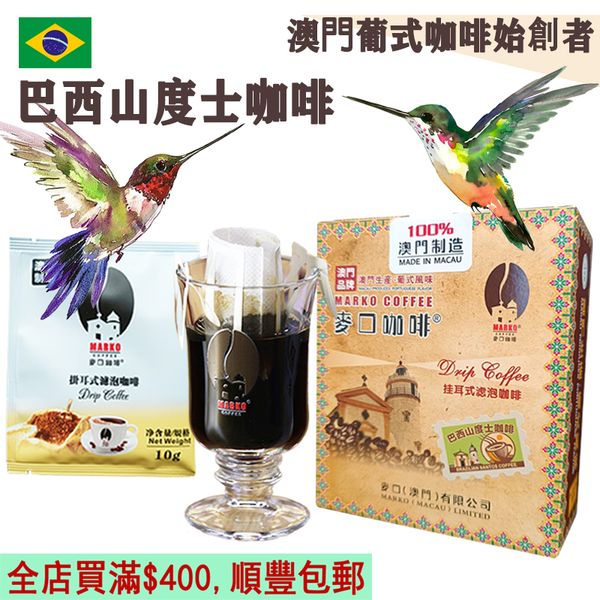 麥口【即叫即炒】巴西山度士掛耳咖啡(小盒裝) 10gX6小包 Brazil Santos Drip Bag Coffee 滴漏滴滤掛耳包 歐陸風味 中烘焙 精品 阿拉比卡 原廠取貨 澳門直送 平行進口