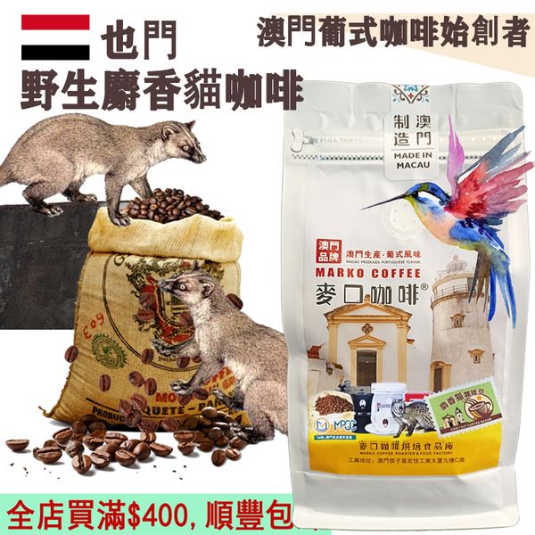麥口【即叫即炒】葉門 野生麝香貓咖啡豆(大袋裝) 1磅454gX1袋 Kopi Luwak Civet Coffee Beans 貓屎咖啡 歐陸風味 中烘焙 原廠取貨 澳門直送 平行進口