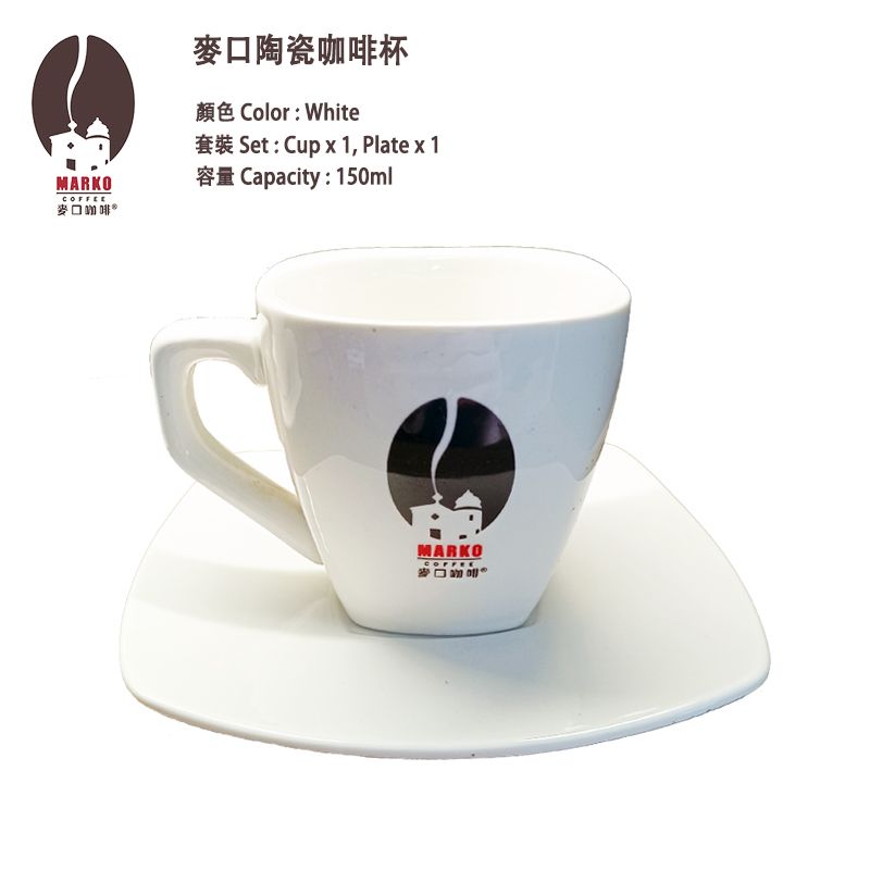 麥口 歐陸風味 陶瓷咖啡杯 X 1 套 (1杯 + 1碟) 厚實經典 陶瓷白色 150ml Espresso Italy 帶杯碟 杯托 耐高溫 擺設裝飾套裝 澳門直送 平行進口