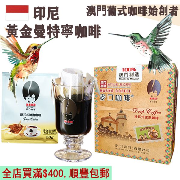 麥口【即叫即炒】印尼 黃金曼特寧(蘇門答臘)掛耳咖啡(小盒裝) 10gX6小包 Golden Mandheling Drip Bag Coffee 滴漏滴滤掛耳包 歐陸風味 中烘焙 澳門直送 平行進口
