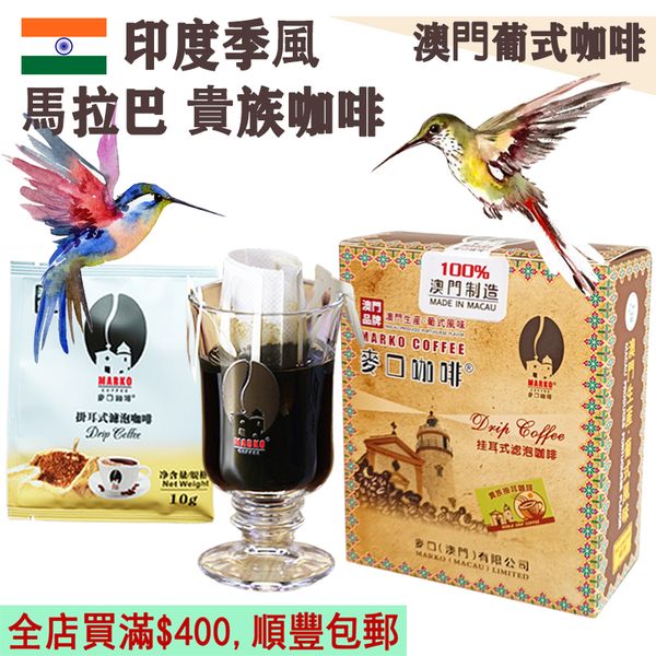麥口【即叫即炒】印度季風 貴族掛耳咖啡(小盒裝) 10gX6小包 India Monsoon Noble Drip Bag Coffee 滴漏滴滤 掛耳包 中烘焙 低因不提神 澳門直送 平行進口