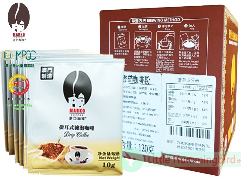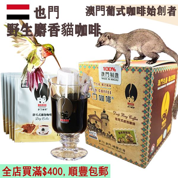 麥口【即叫即炒】葉門 野生麝香貓掛耳咖啡(大盒裝) 10gX12小包 Kopi Luwak Civet Drip Bag Coffee 貓屎咖啡 滴漏掛耳包 歐陸風味 中烘焙 澳門直送 平行進口