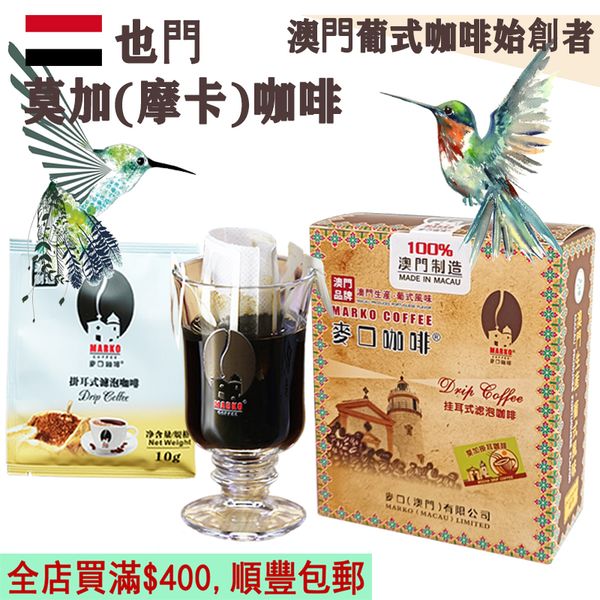 麥口【即叫即炒】葉門 莫加(摩卡)掛耳咖啡(小盒裝) 10gX6小包 Yemen Mocha Drip Bag Coffee 滴漏滴滤 掛耳包 歐陸風味 中烘焙 阿拉比卡 原廠取貨 澳門直送 平行進口