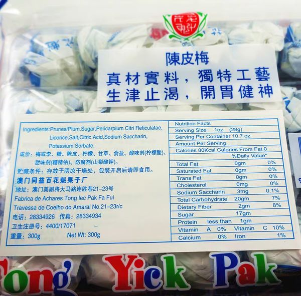 產品成份 : 青梅, 陳皮, 檸檬, 甘草, 白糖, 食用鹽, 檸檬酸, 天然氨基酸, 糖 (無防腐劑! ! !)