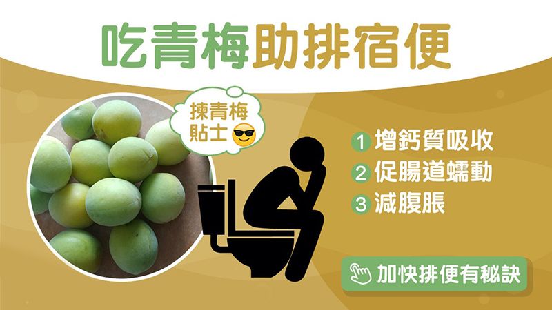 青梅含有大量膳食纖維,對腸道健康非常有幫助 :