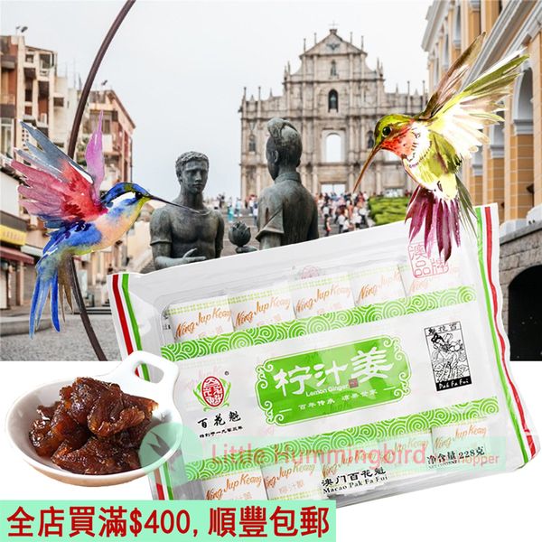 百花魁 檸汁姜 280gX1包 澳門百年品牌 Preserved Lemon Ginger Pickled Fruit 涼果 蜜餞 懷舊小食 薑 提神 特產 人氣澳門手信 澳門直送 無防腐劑 平行進口