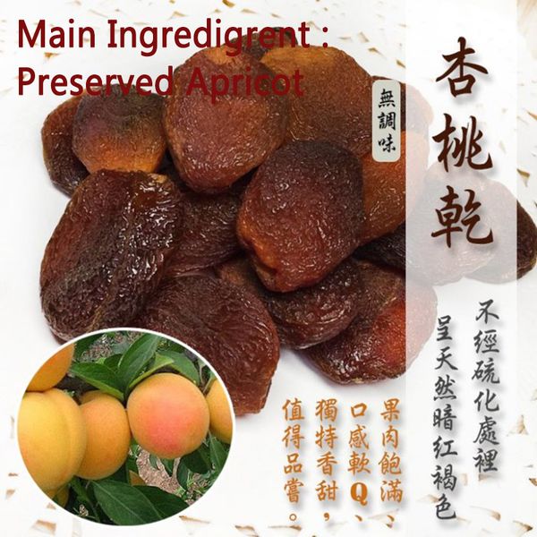 產品成份 : 杏桃, 白糖, 甘草, 食用鹽, 檸檬酸, 呍哩哪油, 香蔗油, 天然氨基酸, 糖 (無防腐劑! ! !)