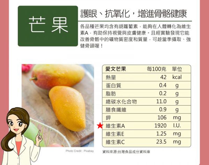 芒果含有豐富的維他命A :