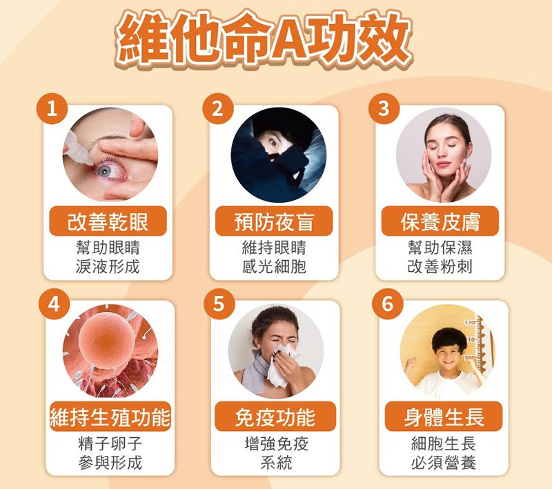 維他命A對身體非常重要,更是眼睛的重要營養,提升視力 :