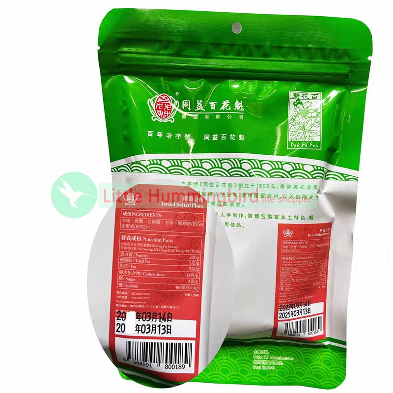 百花魁 話梅 115gX1包 澳門百年品牌 Preserved Salted Plum Pickled Fruit 涼果蜜餞 酸梅乾 懷舊鹹酸甜零食 素食 人氣澳門手信 澳門直送 無防腐劑 平行進口