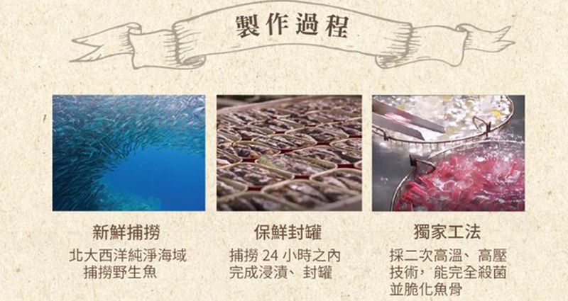 100多年生產罐裝魚的經驗,嚴謹的生產過程,產品優質,暢銷於歐美至中東多國。