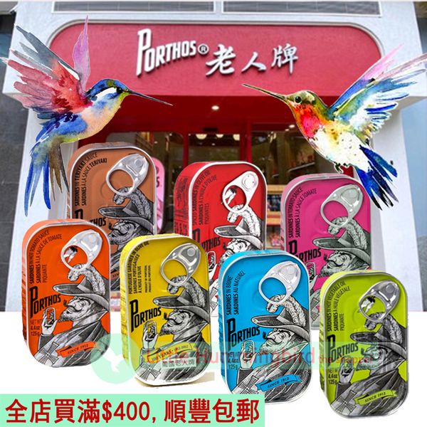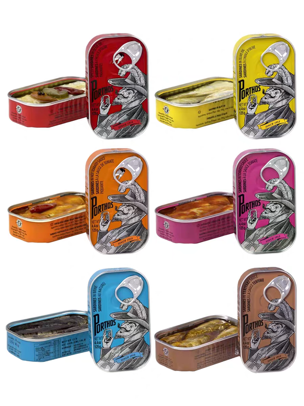 葡國老人牌 沙甸魚罐頭 (全套齊款) 125gX7罐 澳門進口 葡萄牙百年品牌 Porthos Canned Sardines 沙丁魚罐頭 葡式食品即食佐餐 人氣澳門手信 澳門直送 平行進口