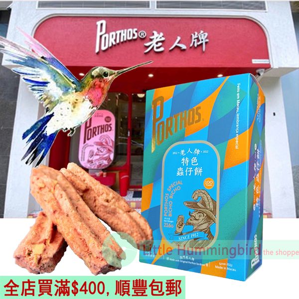 葡國老人牌 特色蟲仔餅 216gX1盒 澳門製造 Porthos 葡萄牙百年品牌 Special Bicho Bicho 沙甸魚鬆 葡式蟲仔餅 杏仁餅 餅乾 人氣澳門手信 企業送禮 澳門直送 平行進口