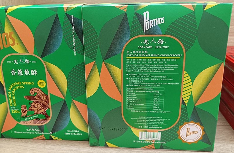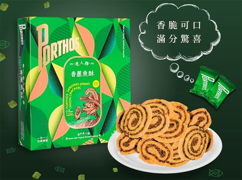 葡國老人牌 香蔥魚酥 (12件裝) 110gX1盒 澳門製造 Porthos 葡萄牙百年品牌 Sardines Spring Crackers 魚鬆牛耳酥 餅乾 人氣澳門手信 禮品 澳門直送 平行進口