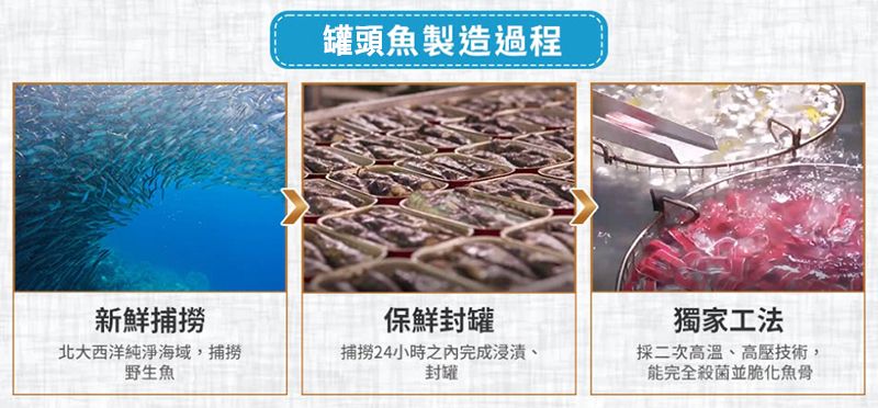 100多年生產罐裝魚的經驗,嚴謹的生產過程,產品優質,暢銷於歐美至中東多國。