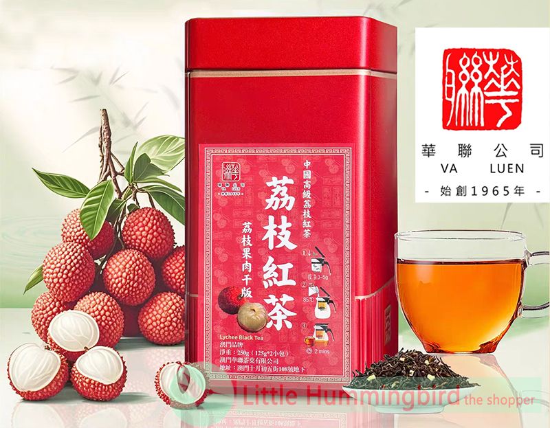華聯 荔枝紅茶(罐裝) (荔枝果肉干版) 250gX1罐 澳門茶王 華聯茶葉 中國高級荔枝紅茶 Lychee Black Tea 紅茶 茶葉 發酵茶 工夫茶 人氣澳門手信 特產 澳門直送 平行進口