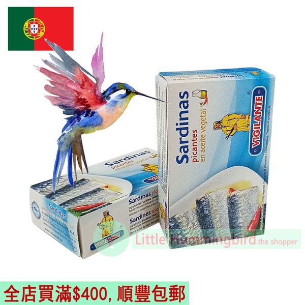 葡國警衛牌 油浸辣沙甸魚 (辣味) 120gX1罐 澳門進口 Portugal 葡萄牙品牌 Vigilante 沙甸魚罐頭 烤烘臘醃魚 即食佐餐 下酒菜送飯 澳門直送 無防腐劑 平行進口