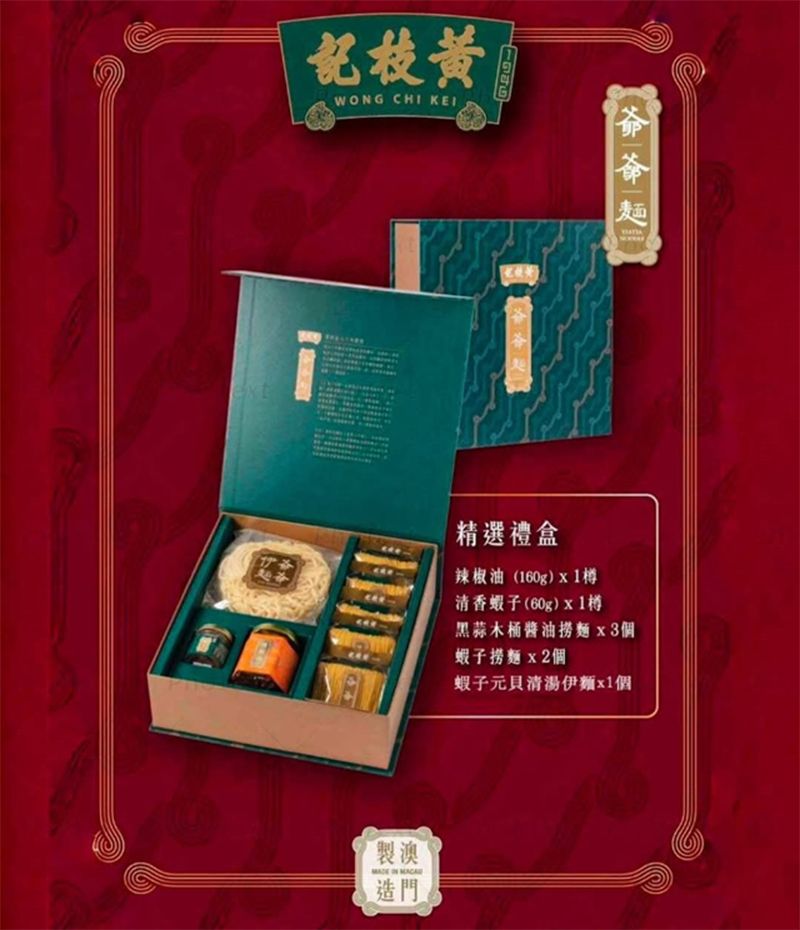 黃枝記 精選爺爺麵禮盒套裝 (8件產品)X1盒 澳門79年品牌 Yea Yea Noodles Deluxe Gift Pack 蝦子 辣椒油 麵餅 人氣澳門手信 特產 澳門直送 無防腐劑 平行進口