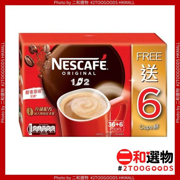 雀巢咖啡-雀巢咖啡 1+2原味即溶咖啡飲品(低糖) 36+6條裝(4891118021317) [新舊包裝隨機發送]