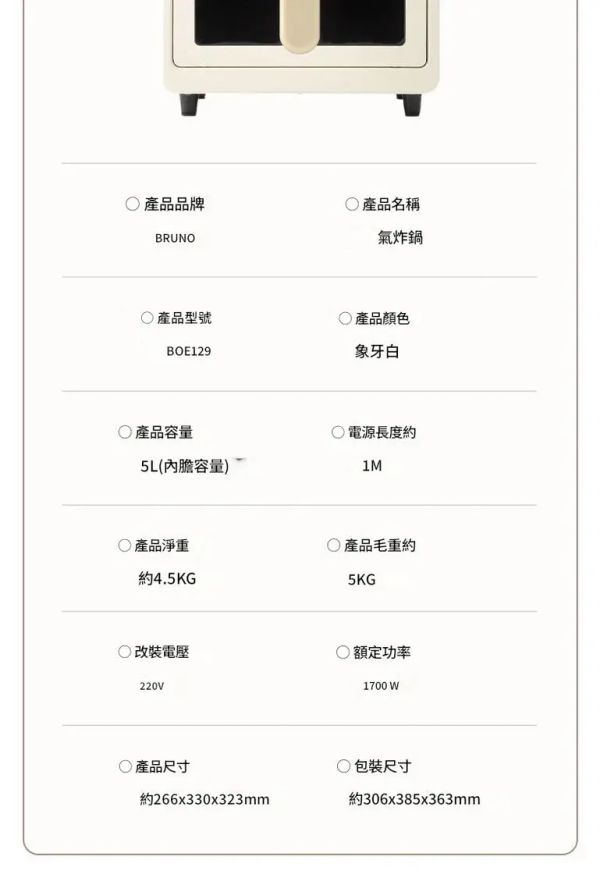 BRUNO氣炸鍋2024新款大容量復古家用視覺化全自動多功能電炸鍋BOE129