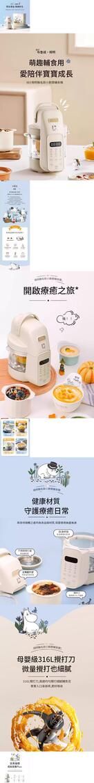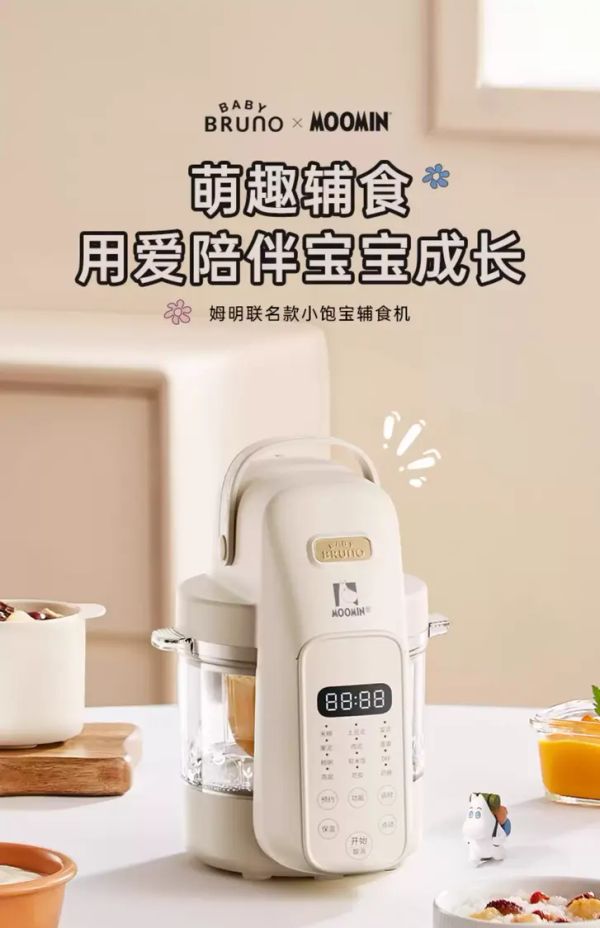 身為全球粉絲喜愛的療癒系卡通形象,姆明的天真靈動被巧妙融入輔食機設計中 —— 機身點綴經典姆明卡通元素,搭配柔和清新的配色,打破傳統廚具的單調感,擺在廚房宛如一件可愛擺件。小巧精緻的機身尺寸不佔檯面空間,即使是緊湊的廚房角落也能輕鬆容納,讓每一次輔食製作都伴隨好心情。號