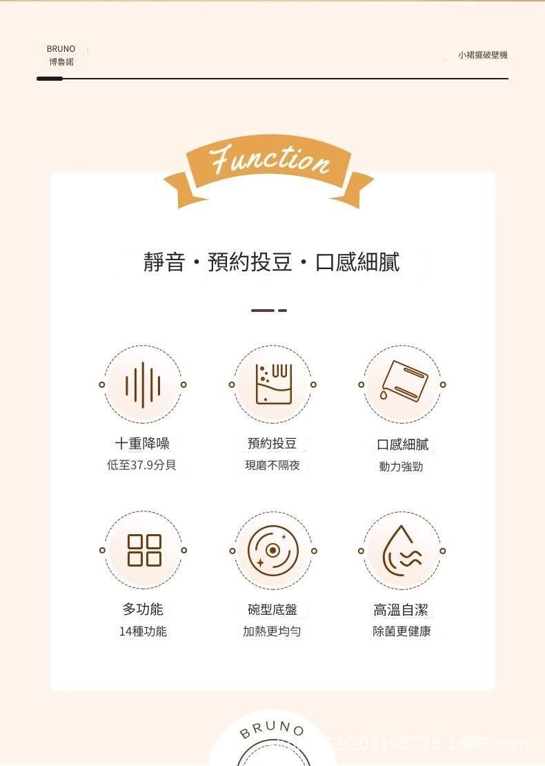 十重降噪 低至379分貝,預約投豆 現磨不隔夜,口感細膩 動力強勁,多功能 14種功能,碗型底盤 加熱更均勻,高溫自潔 除菌更健康。