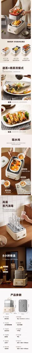 多種烹調模式:具備速蒸與精蒸雙模式,速蒸模式可快速鎖住食物鮮味,適合蒸海鮮、時蔬等;精蒸模式能使食物軟爛脫骨,適合蒸排骨、牛肉等。此外,還支援隔水燉功能,煲湯、燉甜點等都能輕鬆搞定。