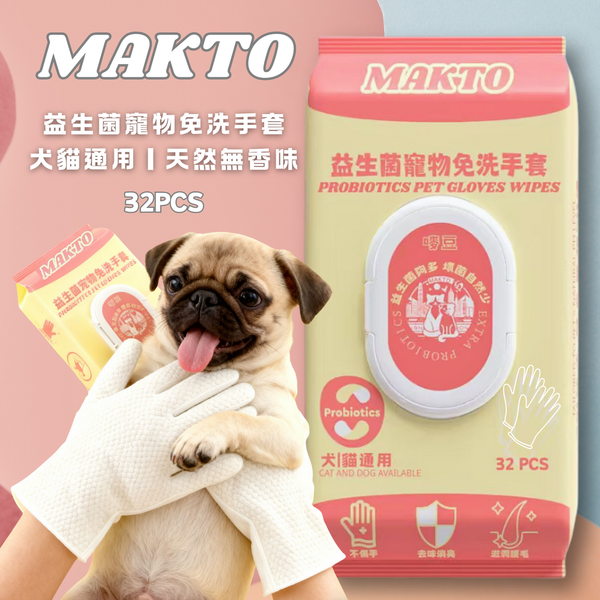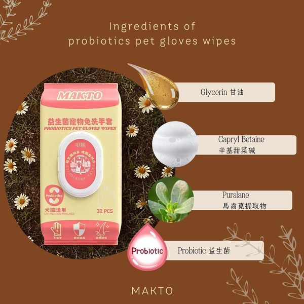 比起普通寵物清潔產品,我哋嘅益生菌免洗手套唔單止解決「清潔」需求,仲關注「皮膚健康」:無刺激配方守護敏感肌,益生菌成分從源頭抑味,免水洗設計減少寵物應激,等鏟屎官省時省力,毛孩潔淨舒適,真正做到「清潔護膚一步到位」嘅養寵體驗