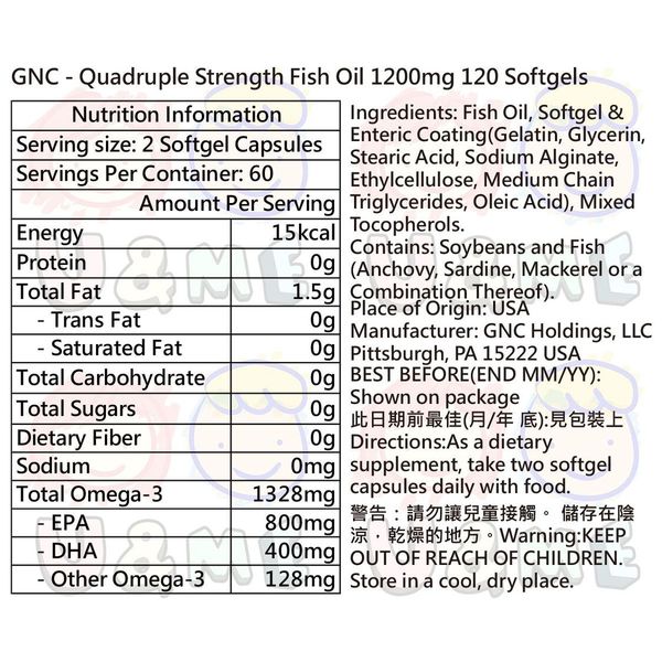 GNC-4倍強效深海魚油膠囊1200mg 120粒 (平行進口貨)