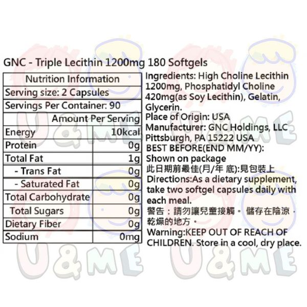 GNC-三倍濃縮強效卵磷脂 1200mg(每份) 180粒 (平行進口貨)